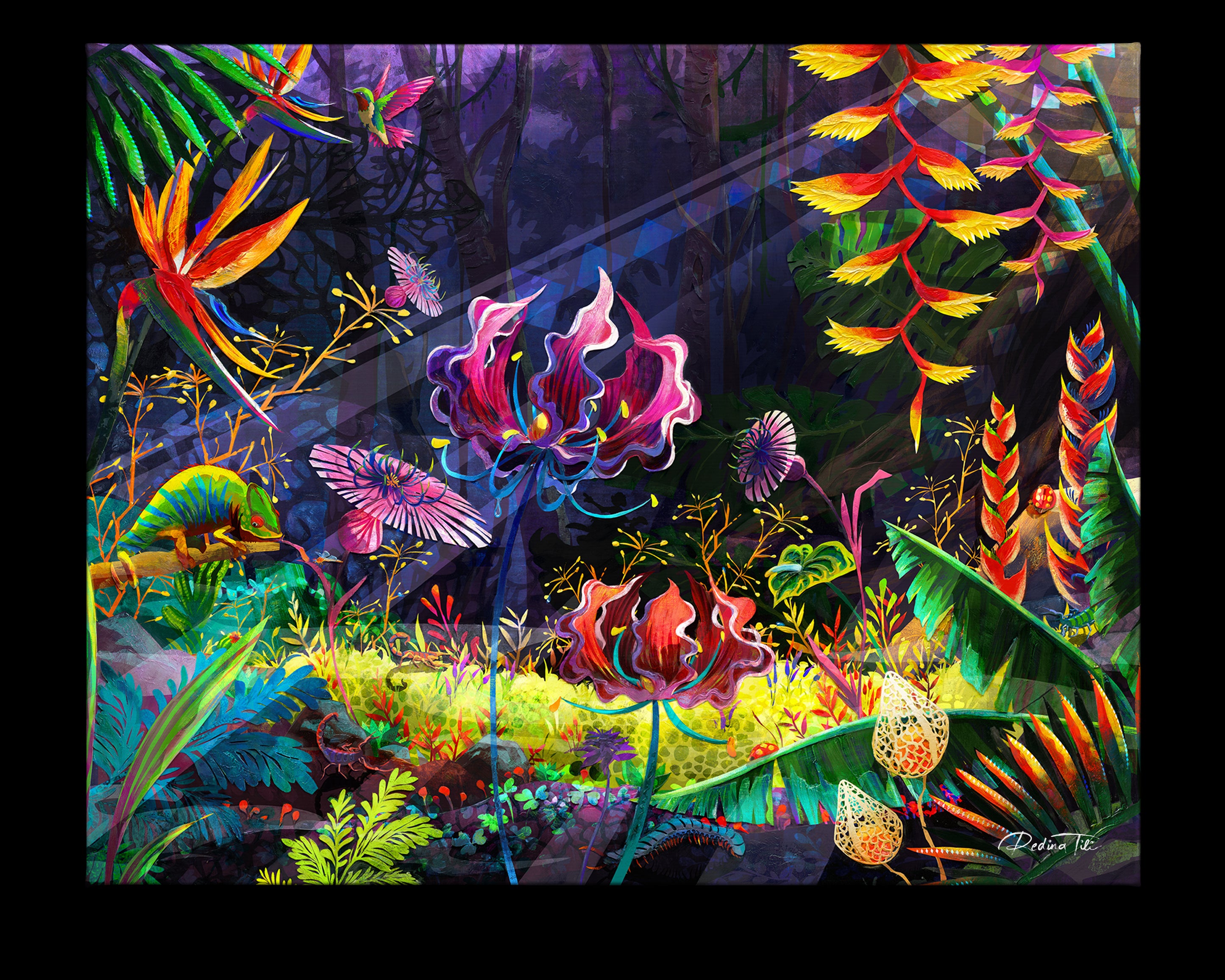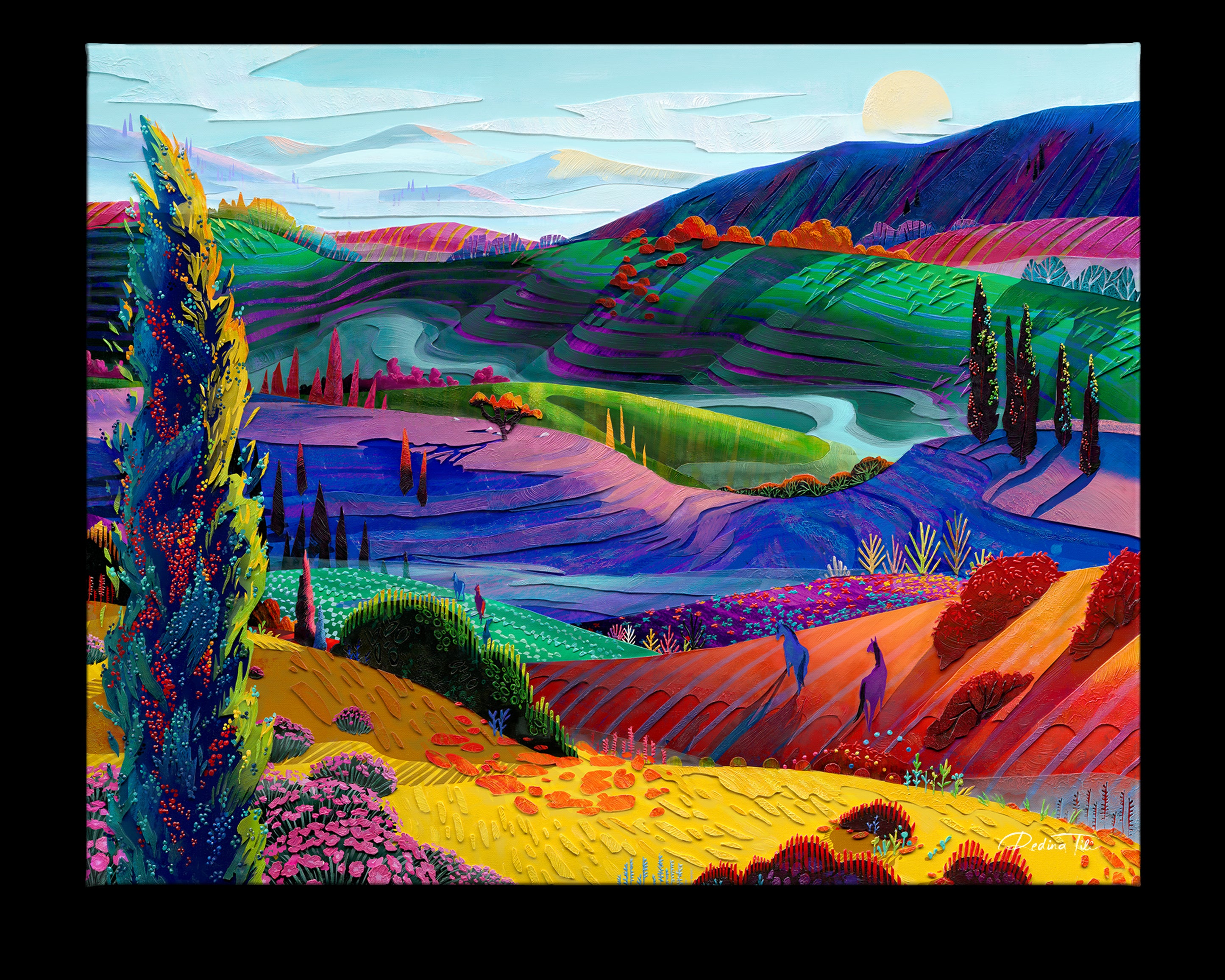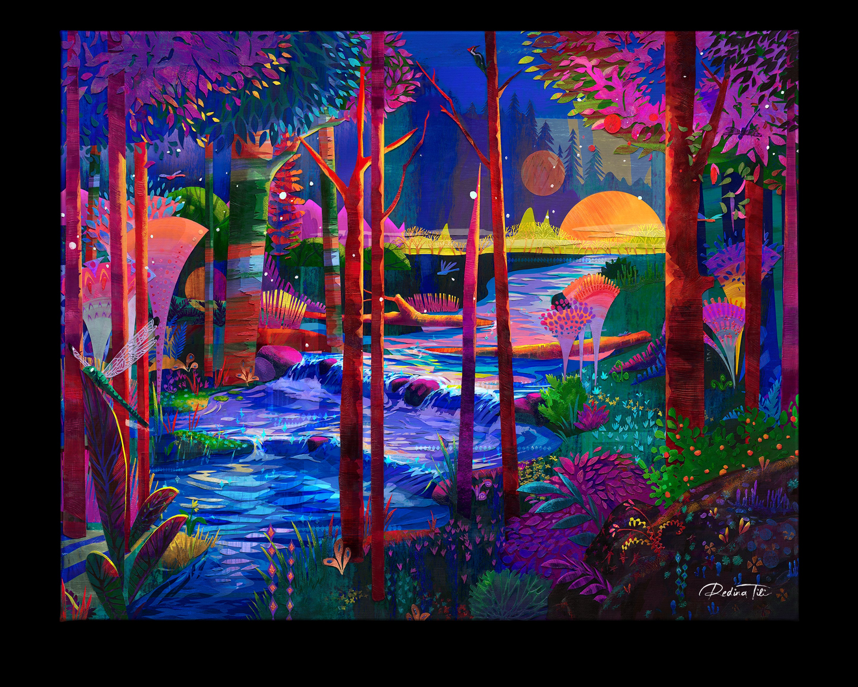Redina's Canvas Limited Editions are produced and signed in-house for the best display of a modern look, perfectionism, durability, detail and color accuracy. They come in multiple sizes to provide a perfect fit for any space in your home or office. The clarity and depth of brushwork and sculpted shapes of these paintings will draw you inside the unique journey through Redina's magical, colorful world.